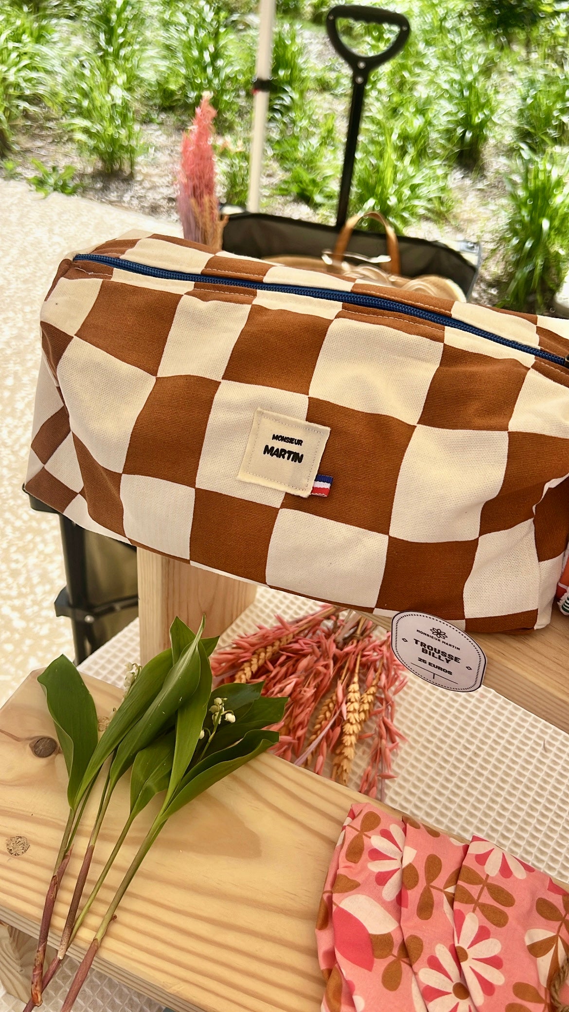 La trousse Billie est une grande trousse rectangulaire en coton avec son imprimé damier couleur camel pensée pour celles et ceux qui aiment les accessoires à la fois pratiques, élégants et durables. Grâce à sa taille généreuse et son design épuré, elle est parfaite comme trousse de toilette, trousse maquillage ou pochette de voyage.