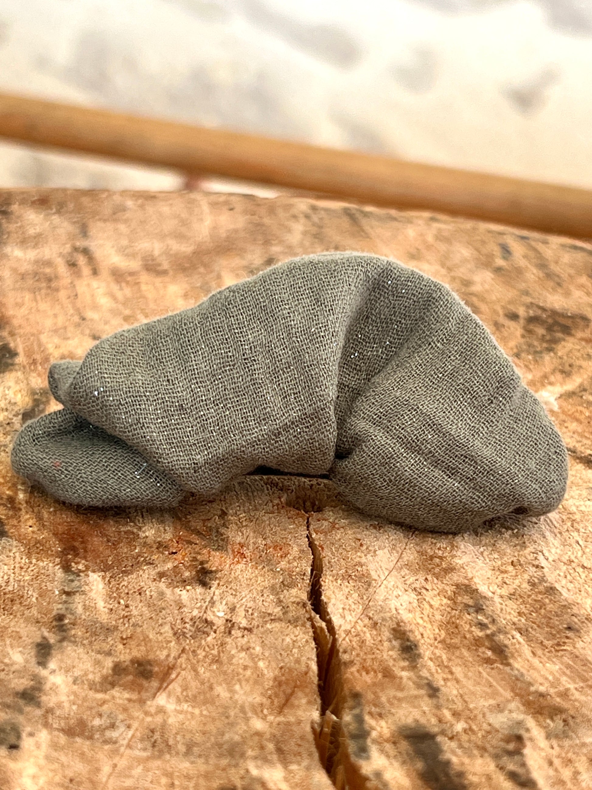 Barrette à Clip en Double Gaze Kaki à Paillettes – Élégance Discrète & Touche Lumière