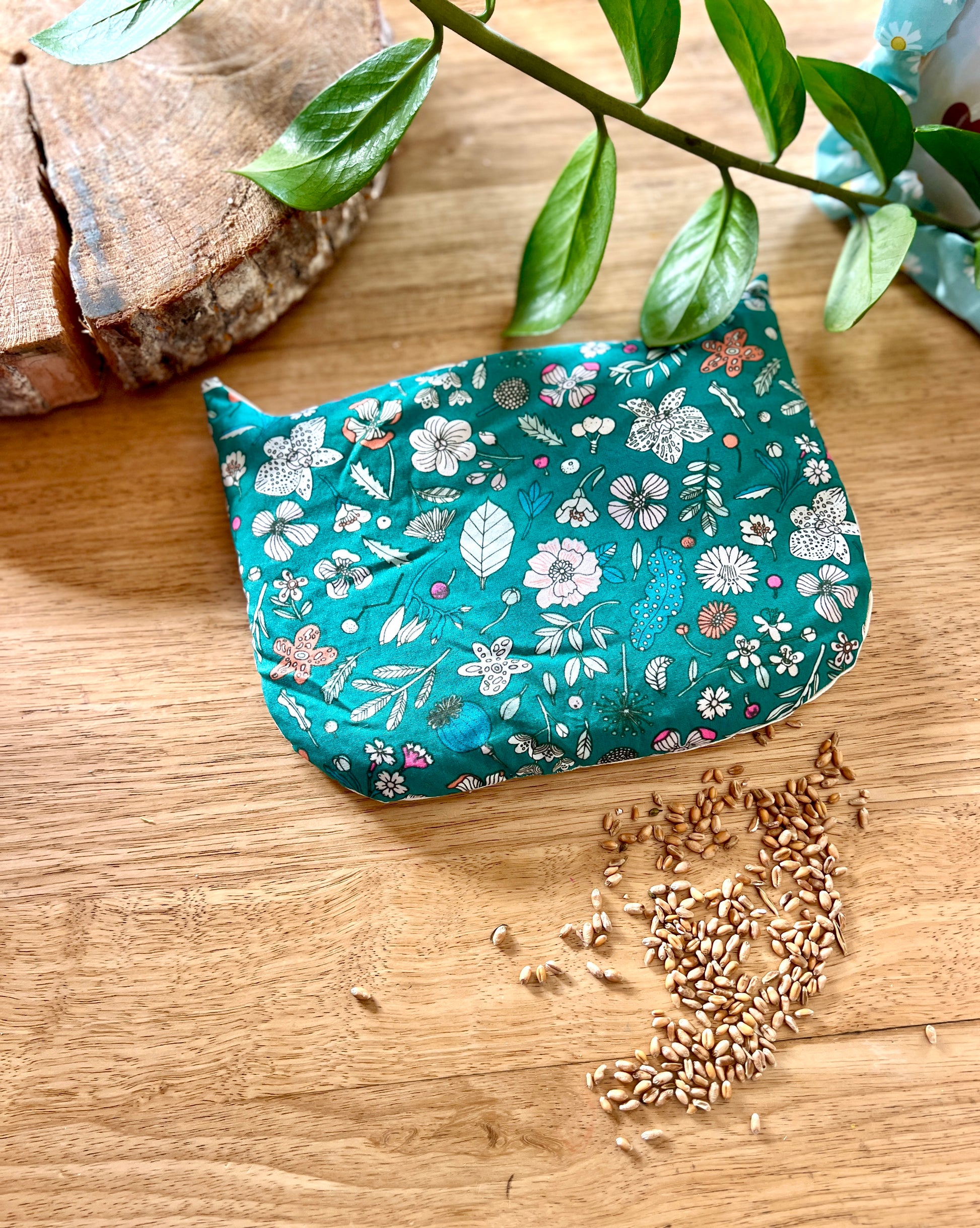 Bouillotte sèche Fleurie Vert – Artisanale, douce & réconfortante