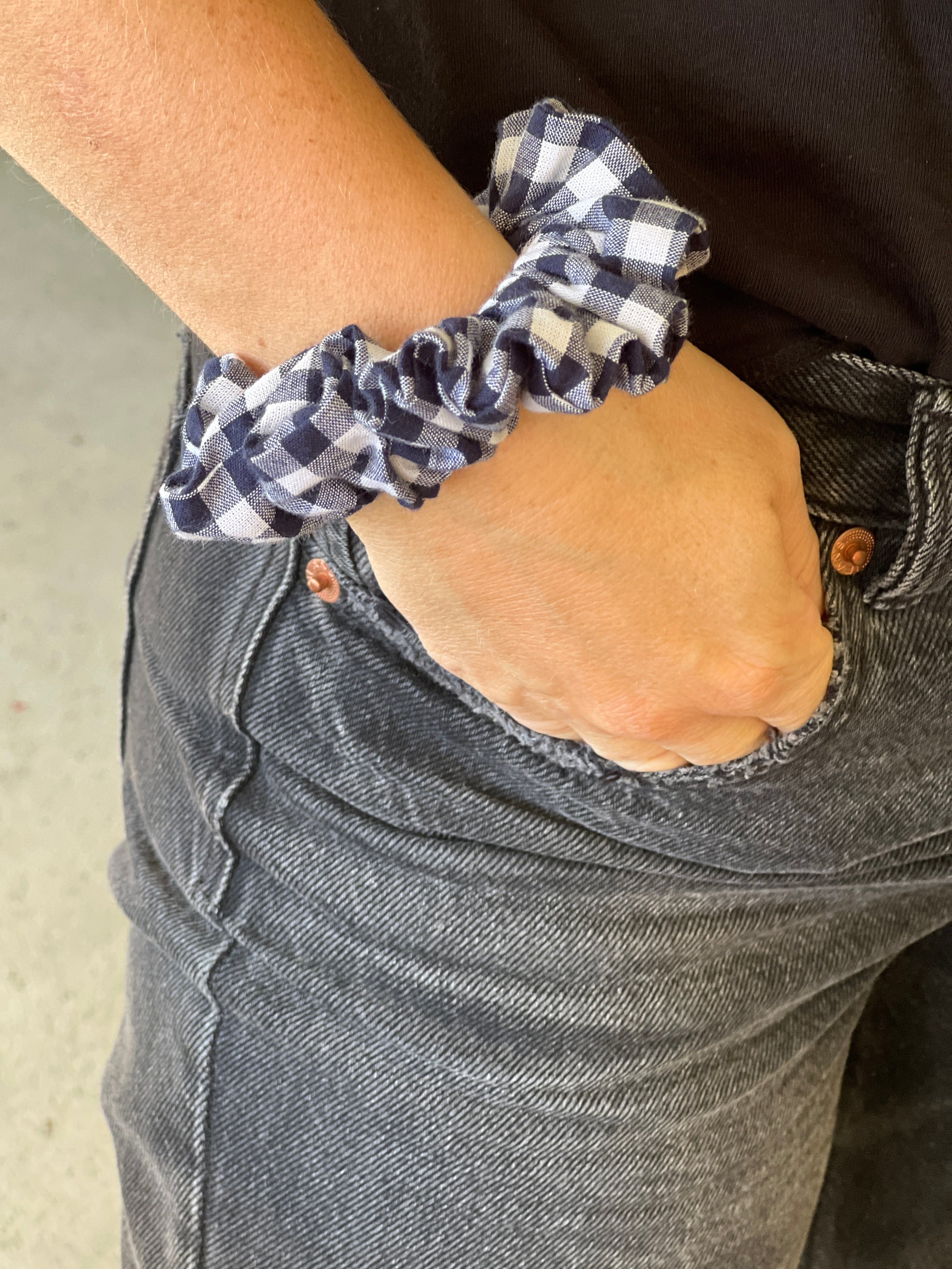 Chouchou en coton vichy bleu marine – Accessoire cheveux tendance et confortable