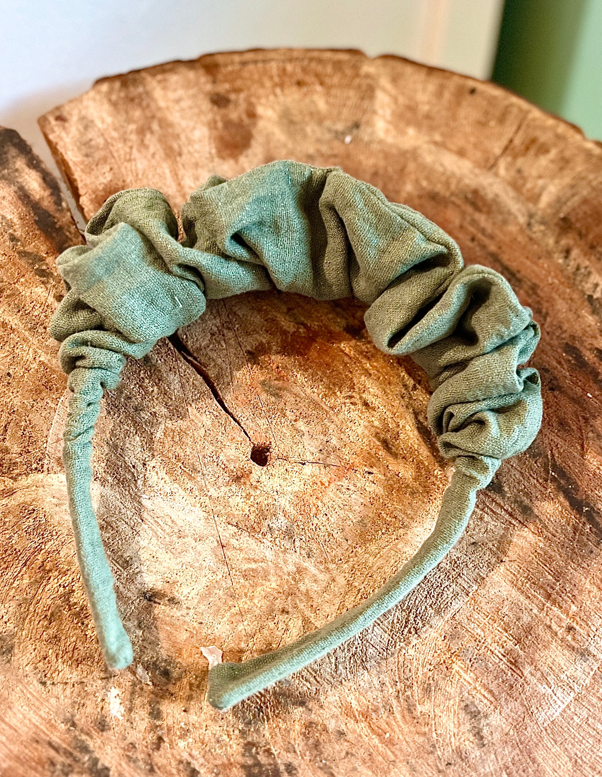 Serre-tête bouffant double gaze kaki pailletées Coton – Filles & Adultes